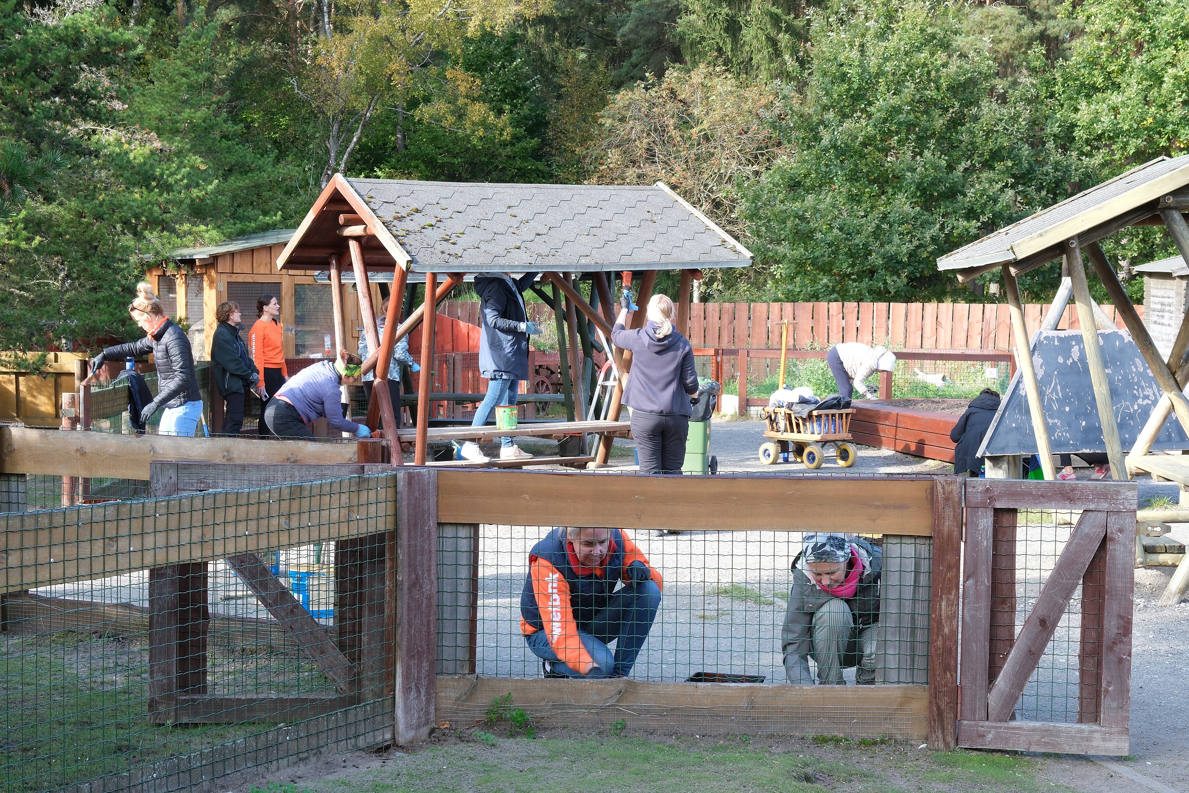 Tublid vabatahtlikud abilised Swedbankist aitasid laste loomaaeda kirkamaks värvida ning tõid meie loomadele maiustamiseks kõrvitsaid ja mett.