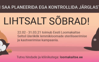 Eesti Loomakaitse Selts (ELS) kutsub kõiki kassi- ja koeraomanikke oma lemmikuid viima steriliseerimisele ja kastreerimisele vältimaks soovimatuid järglasi, jooksuaja poolt ...