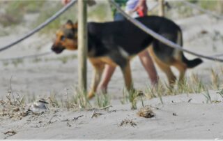 Vabalt silkav koer häirib rannas pesitsevat lindu