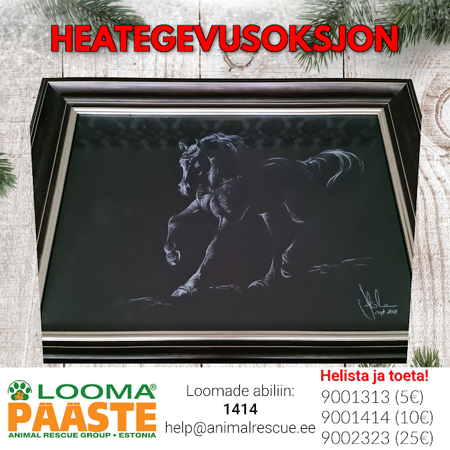 Natuke veel ja kohe on käes eestimaalaste üks lemmikpühadest, mil pere koguneb ja teineteisele kingitusi tehakse. See toob paraku kaasa ka suure murekese, et mida siis kinkida? Soovitakse ju saajale ikka heameelt valmistada ning vähemalt minu enese jaoks on alati tegemist vaat, et raskeimast raskeima ülesandega – no kõigil on ju kõik juba olemas ning mõttetu nänniga ei tahaks kohe üldse narritama hakata. Loomapäästegrupi helgemad pead nuputasid just hiljuti, et mida tänavu juba traditsiooniks kujunenud jõuluoksjonile üles seada? Parim idee saabus üsna ootamatult kui loomasõbrast kunstniku Mari-Mai Koha kiri me postkasti prantsatas: