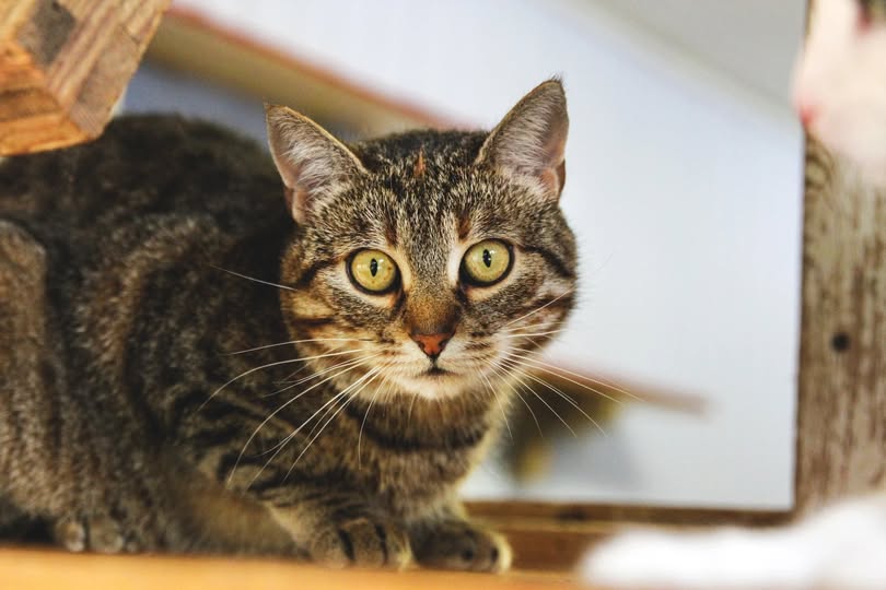 Kati, keskmist kasvu nooremapoolne emane triibik, sattus varjupaika koos oma punasekarvaliste pisikiisude pesakonnaga aasta tagasi septembris. Pojakesed leidsid endale üksteise järel kenad kodud, kuid ema jäi meile. Kati oli umbusklik, tõrges, kartlik – üpris metsik kass, kes oli ilmselt läbi käinud nii tulest kui ka veest.