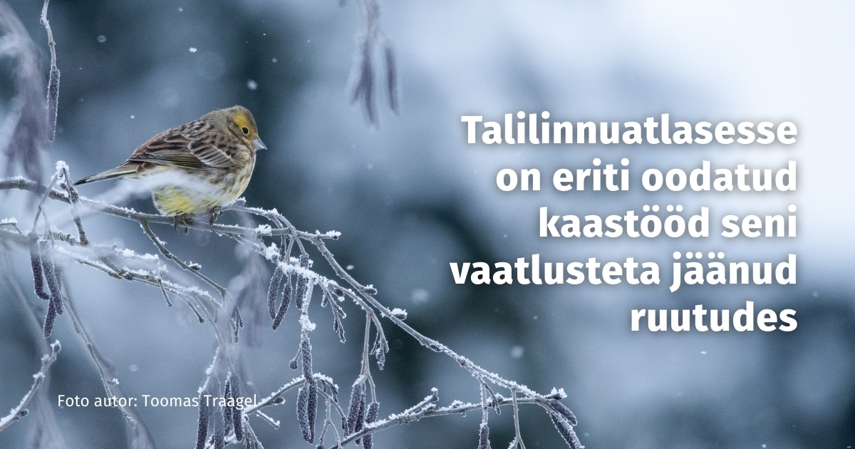 Eesti esimese talilinnuatlase ehk taliatlase vaatluste teostamise esimene periood on jõudnud lõpusirgele. Ornitoloogiaühing kutsub üles kuni veebruari lõpuni tegema vaatlusi seni tähelepanuta jäänud atlaseruutudes.