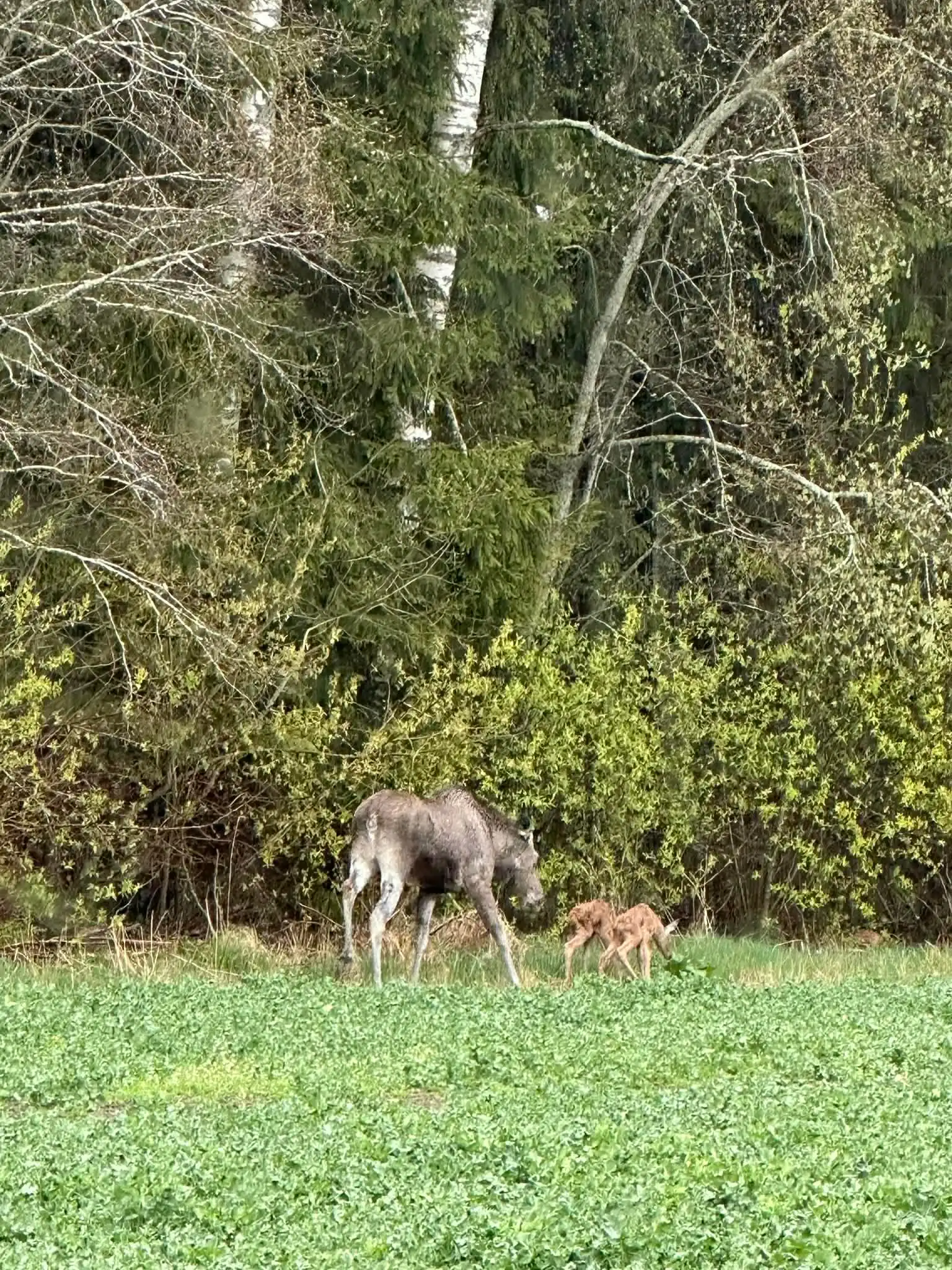 Lääne-Virumaal Simuna jahialal õnnestus kohalikul jahimehel jäädvustada haruldane hetk, mil põdralehm oli koos äsja sündinud vasikatega.